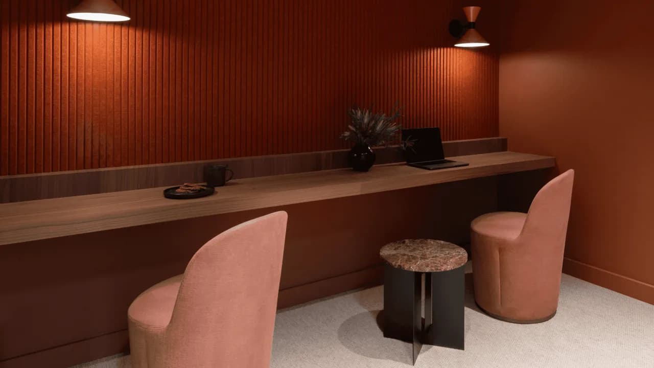 Sound design principles. Literally the conference rooms and private offices along the perimeter of the co-working space benefit from the sound-absorbing qualities of the SynSisal® fiber for privacy and quietude.