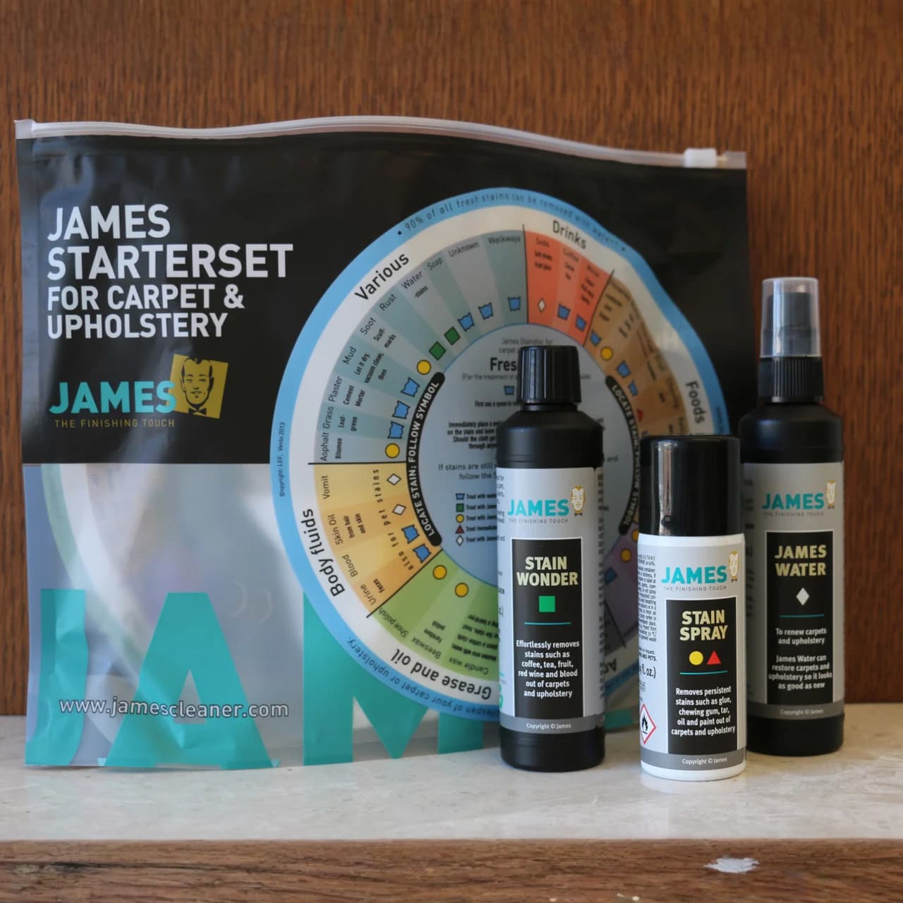 The James Starterset is a "first aid kit for stain accidents" that inevitably happen on carpet.