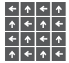 All carpet tiles face the same direction with the tile seam displaced by half a tile in the length direction.