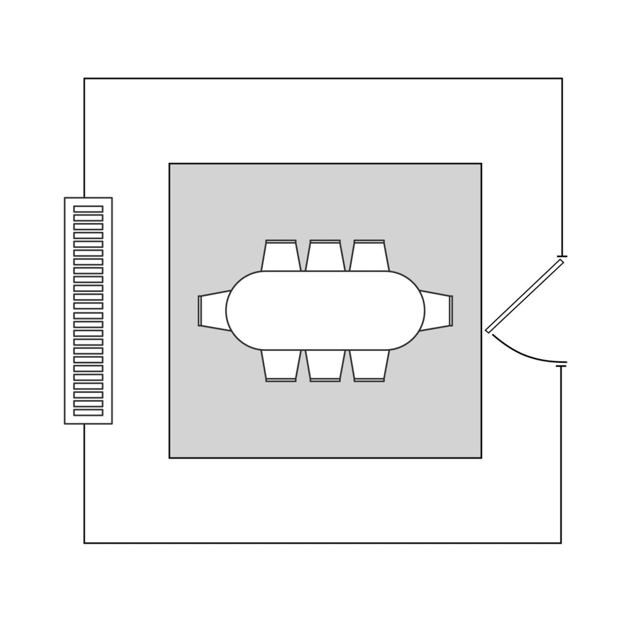 Rugs dampen sound in hard-surfaced meeting rooms, an especially important consideration for rooms with glass walls or open ceilings. Select a flatweave, low-pile material for easy chair movement and add a felted rug pad for acoustic support.