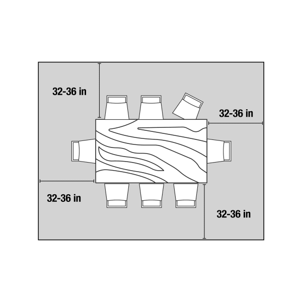 A conference room rug should extend at least 32" beyond the edge of the table in all directions. This prevents chair legs from catching on rug edges when pulled out. It also ensures balanced visuals even when chairs are in use.