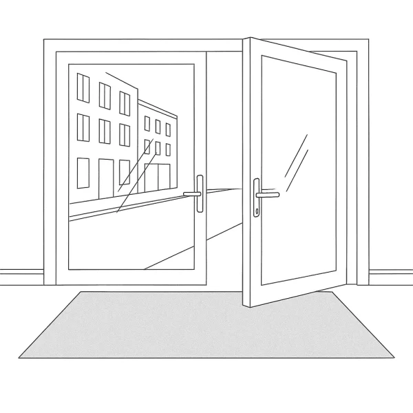Don’t block entry flow. Rugs should start 12–24” inside the threshold or vestibule and avoid any door swings. For safety and ADA compliance, use low-pile, firm-backed rugs.