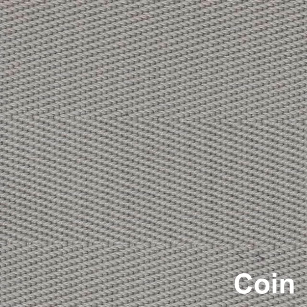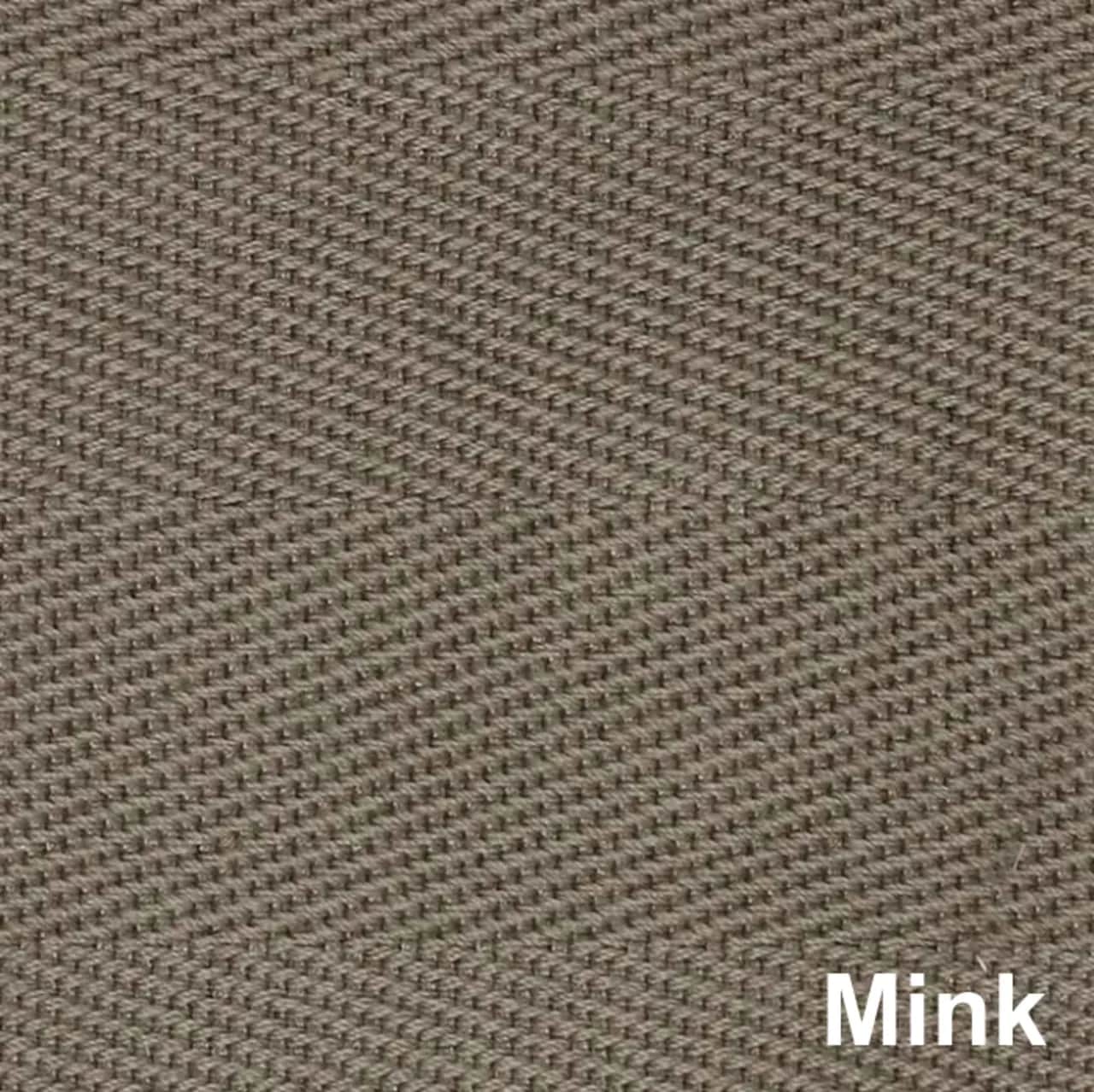 Polyester is a man-made synthetic textile that looks similar to natural cotton. This border option is slightly smoother to the touch than cotton and is easy to clean. The reveal width ranges from 1 1/4" to 3" and does not add any extra width to the rug.