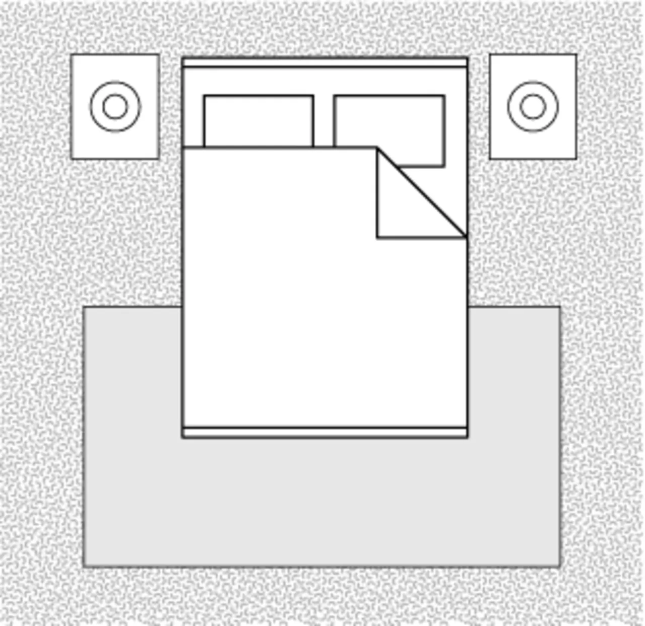 Bedroom (Queen Bed) | 6' x 9' → 8' x 10' | Position the rug under the bottom two-thirds of the bed for a balanced look. |