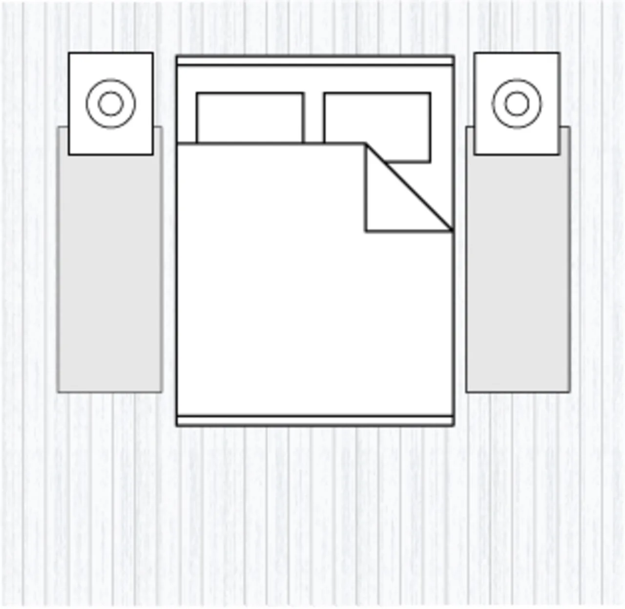 If the primary bedroom is sizable, we recommend that all furniture is placed on a large area rug—queen or king size bed plus two nightstands.